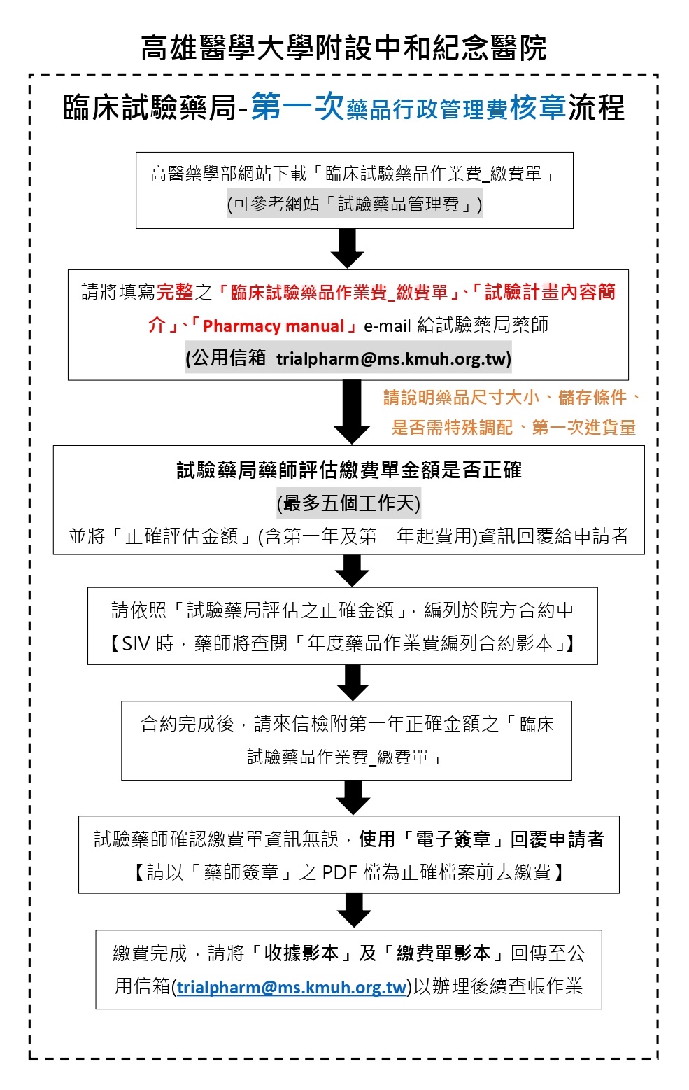 高醫臨床試驗藥局-常見藥品管理費Q&A